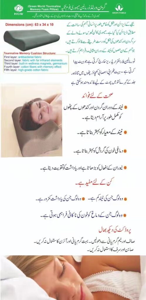 The design and shape of the pillow are specially crafted to align with the human body’s structure. Memory cotton fibers conform to the head, neck, and shoulders, providing ideal support to these areas during sleep. It emits Tourmaline Far Infrared Rays (FIR), which generate heat. Heat therapy can be beneficial for relieving nerve tension, muscular stress, and deep tissue injuries to the skin.